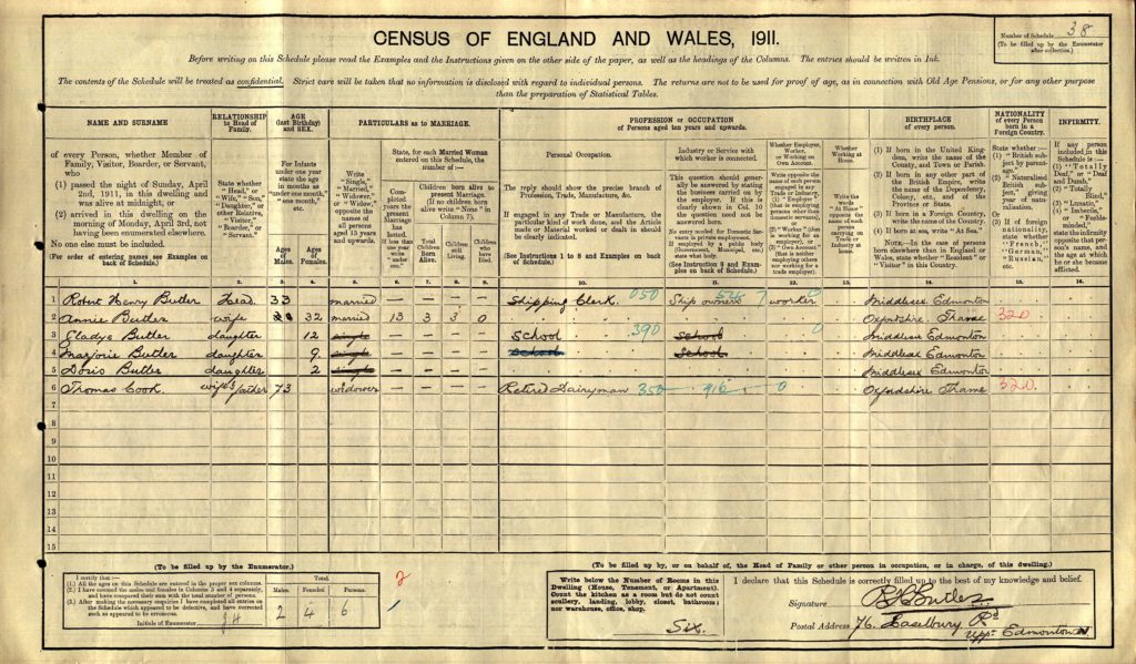 The 1939 Register lists Annie Gladys Butler (1899–1978) living with her family in Wandsworth, a time of stability before the upheaval of war.