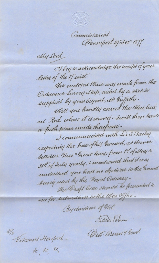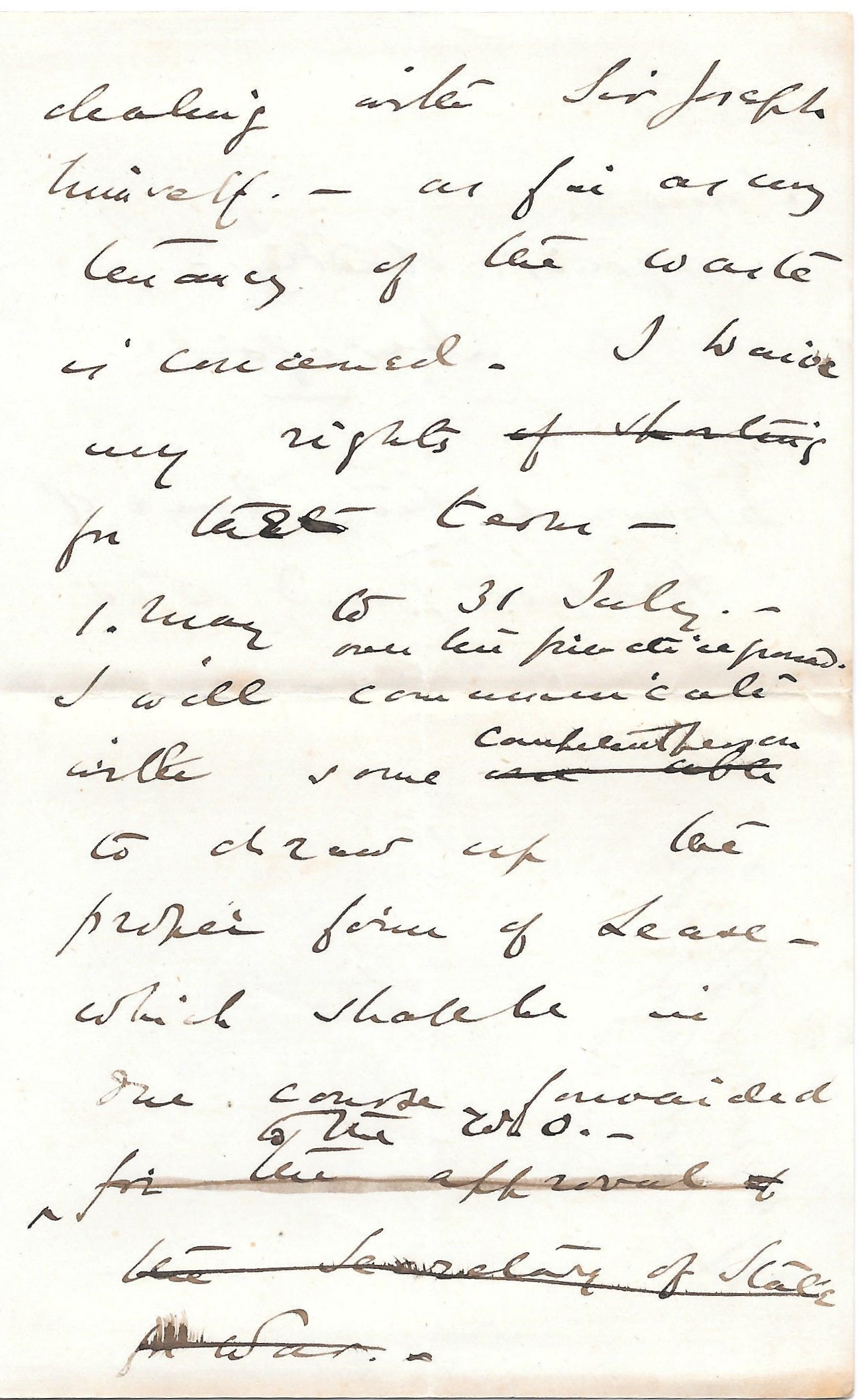 Artillery Practice Range Black Mountain lease and letters 1878 page 2