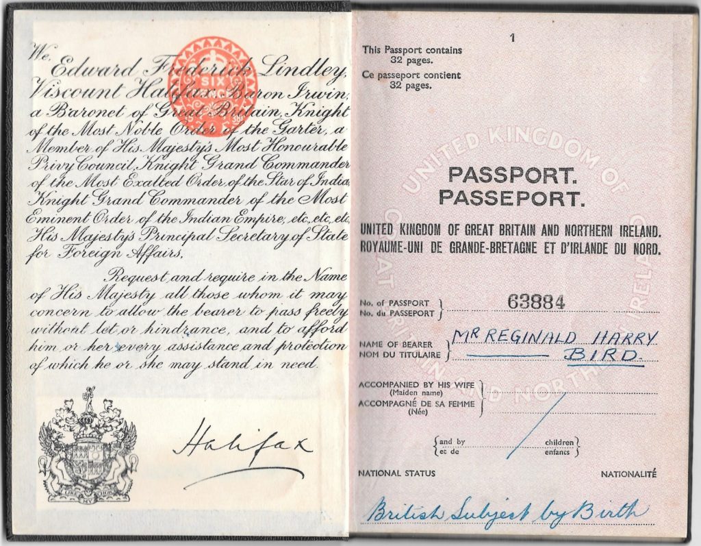 Name of Passport Holder: Reginald Harry Bird