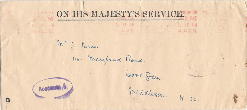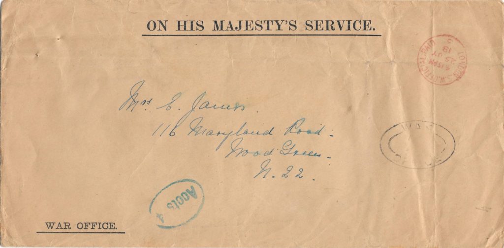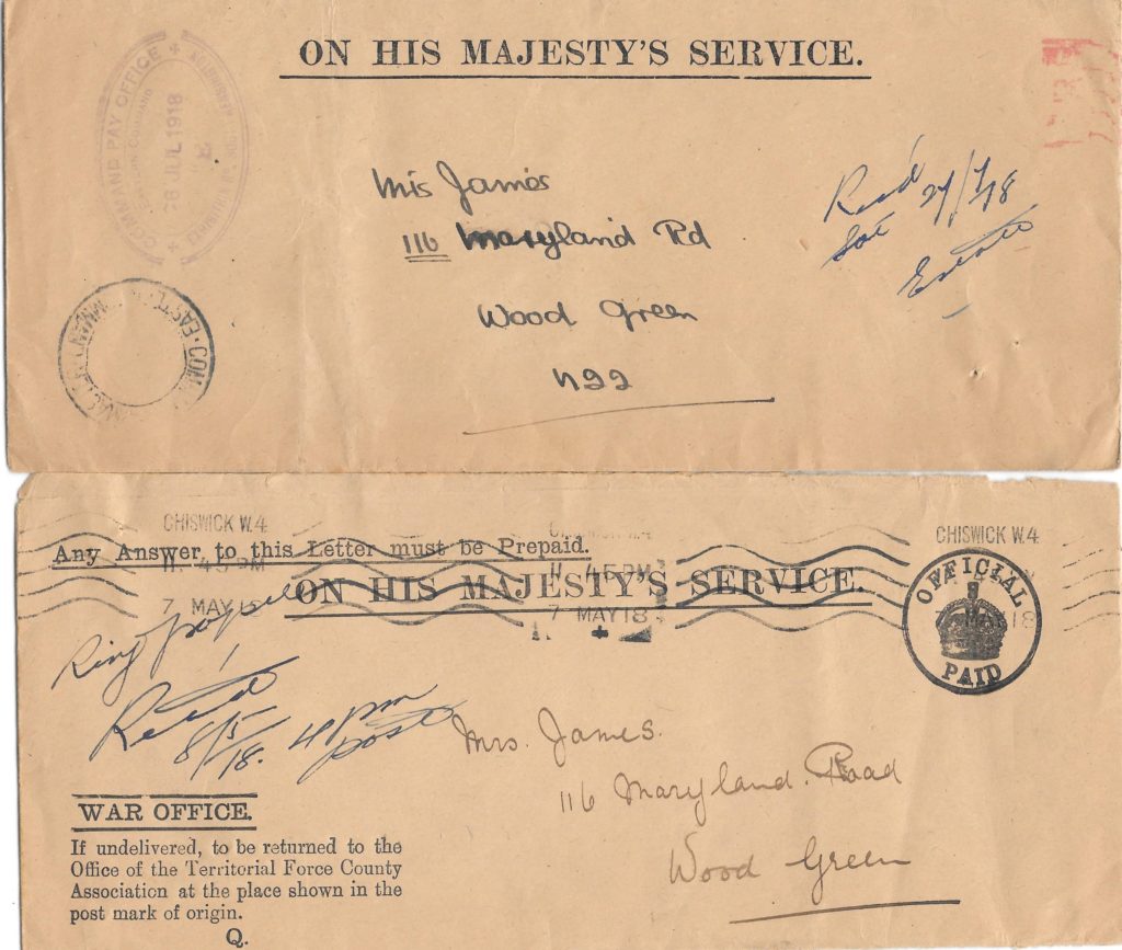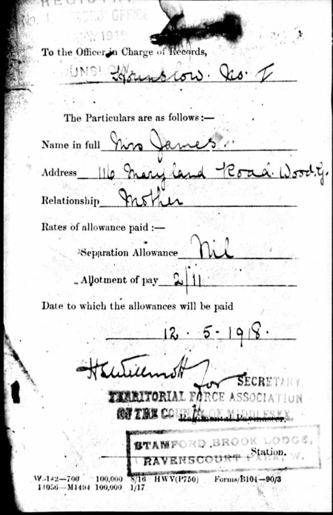 The James family was typical of the striving lower-middle class of Edwardian London, moving to Wood Green by 1911 as John’s work on the railways offered stability and hope for the future. Their home on Maryland Road became the family’s base during the turbulent years of the First World War.
