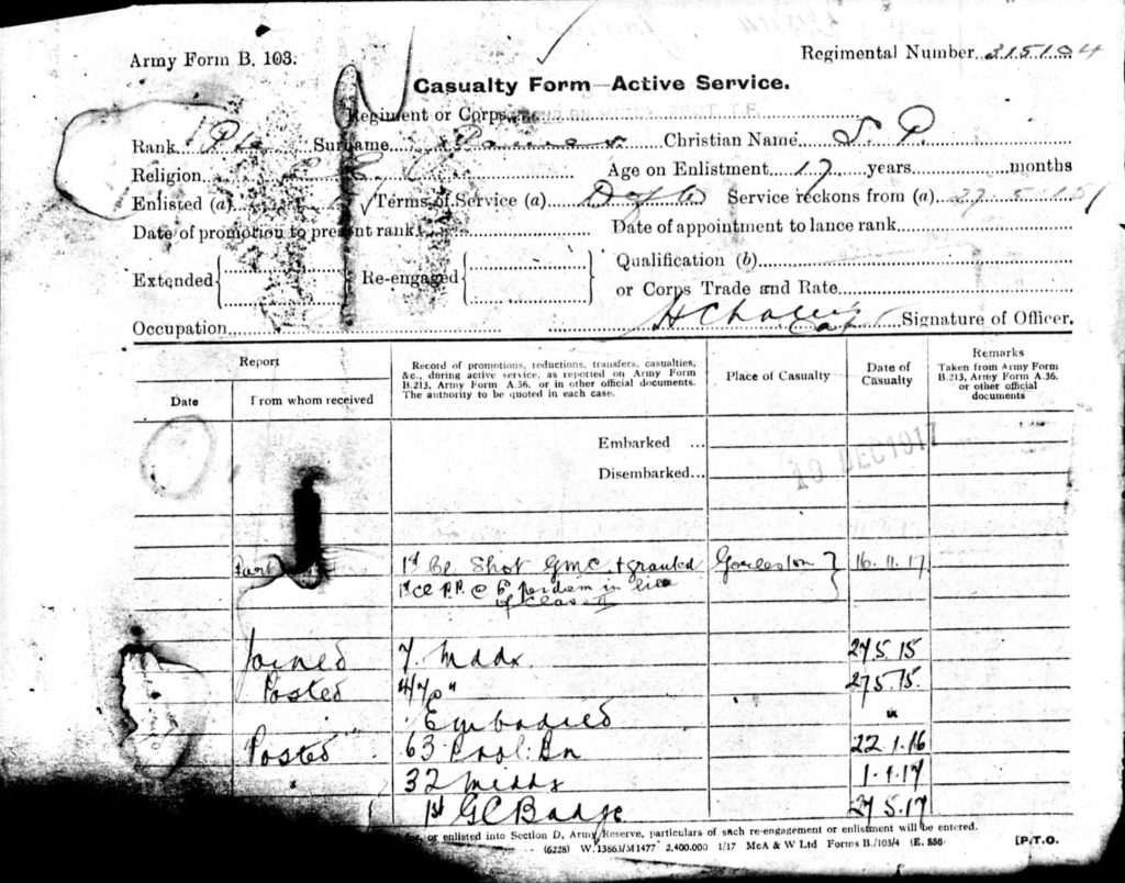 On 27 May 1915, Stanley made the fateful decision to enlist in the army at Hornsey, just seventeen years old and swept up in the fervour and sense of duty that gripped the nation. He joined the 18th Battalion of the Duke of Cambridge’s Own (Middlesex) Regiment. Assigned Regimental Number T.F.315104, Stanley joined countless other young men in the muddy training camps and, later, the front lines of the Western Front.