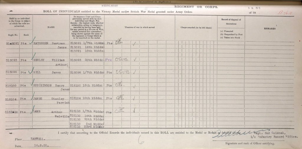 The Duke of Cambridge’s Own (Middlesex Regiment), 18th Battalion
