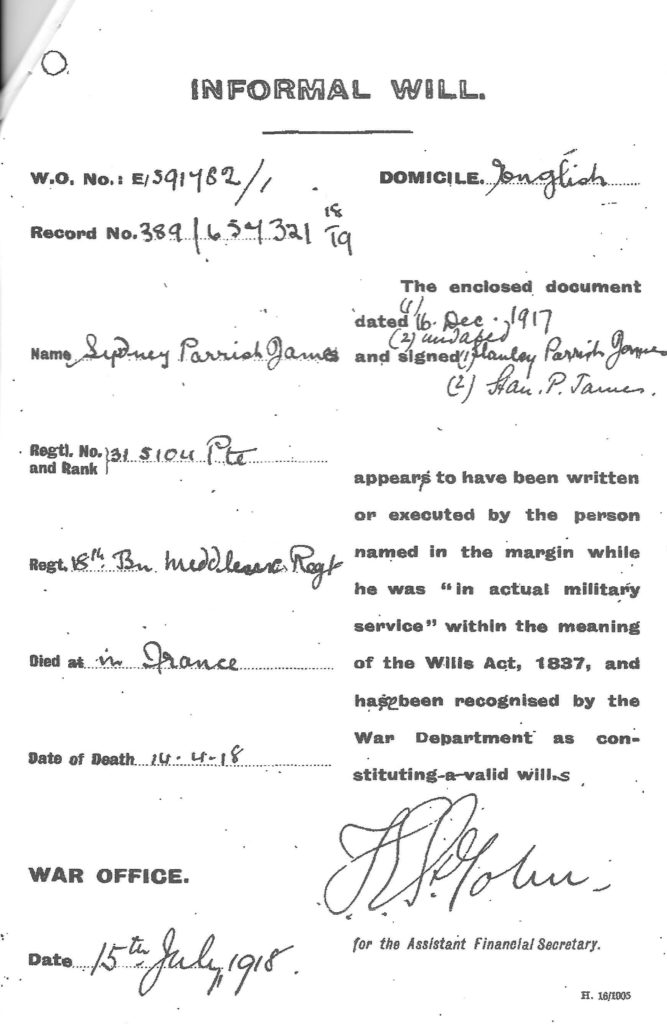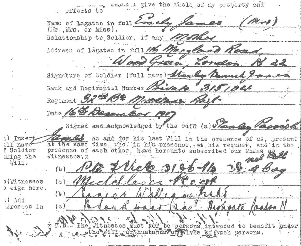 In April 1918, with the war entering its final and most brutal phase, Stanley found himself stationed in Flanders—scene of some of the bloodiest fighting of the conflict. On 14 April 1918, aged just 20 or 21, he was killed in action. The details of his death remain lost to history, but just before he died, Stanley hurriedly wrote his will—almost certainly from his trench, amid the chaos of battle.