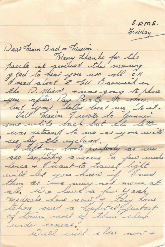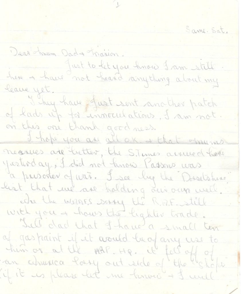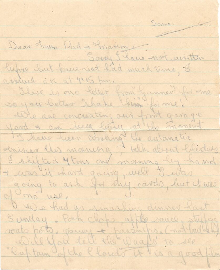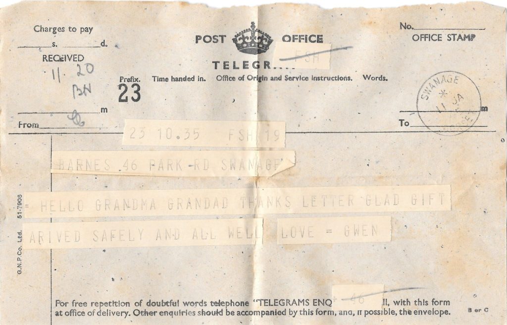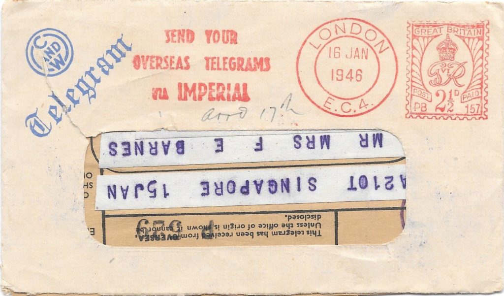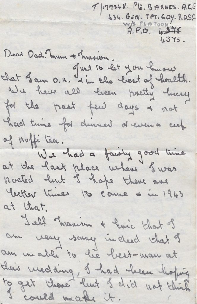 Frank’s son (pictured right), Anthony (Tony) CE Barnes (born in the Wareham, Dorset area 11 June 1920), was an apprentice electricians wireman at the beginning of hostilities in 1939. During the war he served in the British army in the UK and later in Singapore. Much of this archive includes Tony’s correspondence with Frank and his wife during the war years. Tony married his wife, Mary, in 1955 and I believed he died during the mid 2010s.