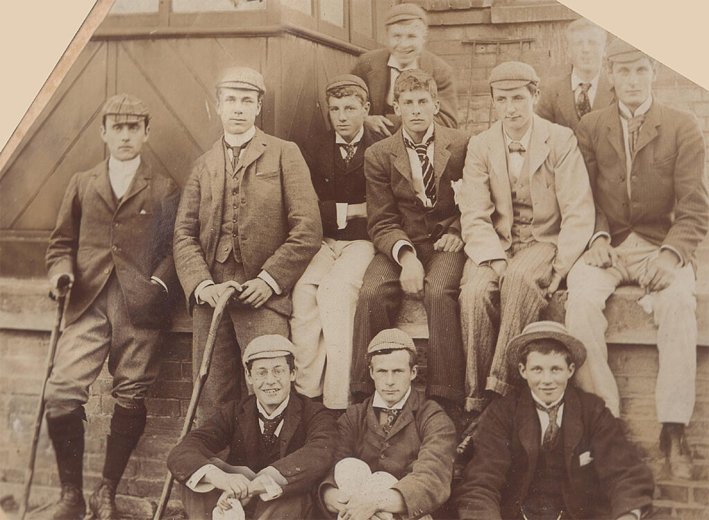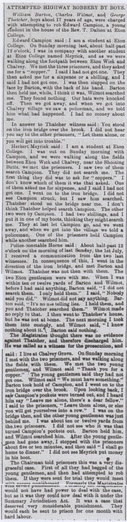 Amongst the various cuttings and pictures are three Eton Requests for Leave and twenty-two Punishment Slips. Herbert seems to have been rather proud of these and they include reasons for punishment and the Latin prep to be completed. Also there are cuttings relating to cricket matches including one where Harrow Constitutional managed to score nought against St Pancras United’s innings of 209 (below).