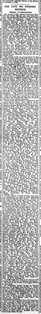 Herbert Chiverton Meyrick was born on the 18th October 1874 at Apley Castle. The 4th son of Sir Thomas Charlton Meyrick (14th March 1837 – 30th July 1921), Member of Parliament (for Pembroke between 1868 and 1874), 1st Baronet, C.B., and Mary Rhoda Hill (died: October 4th, 1924).