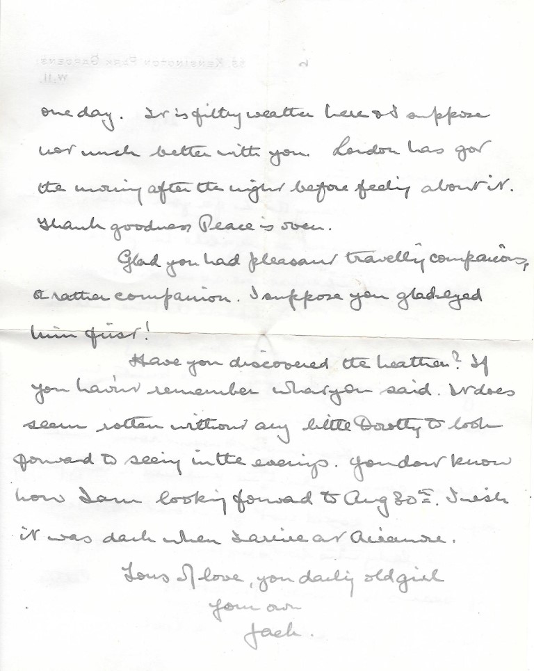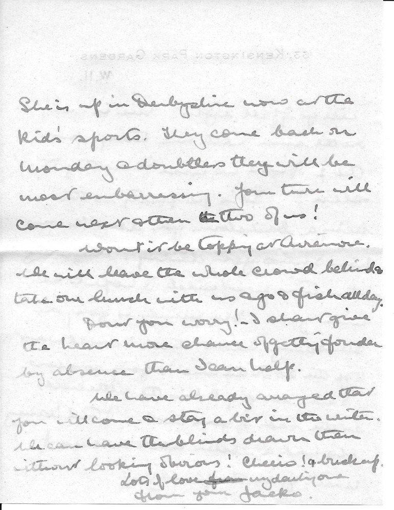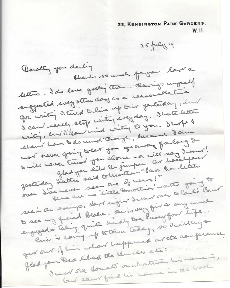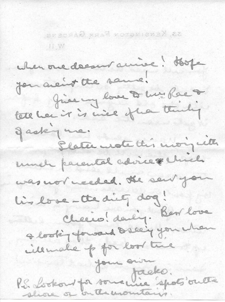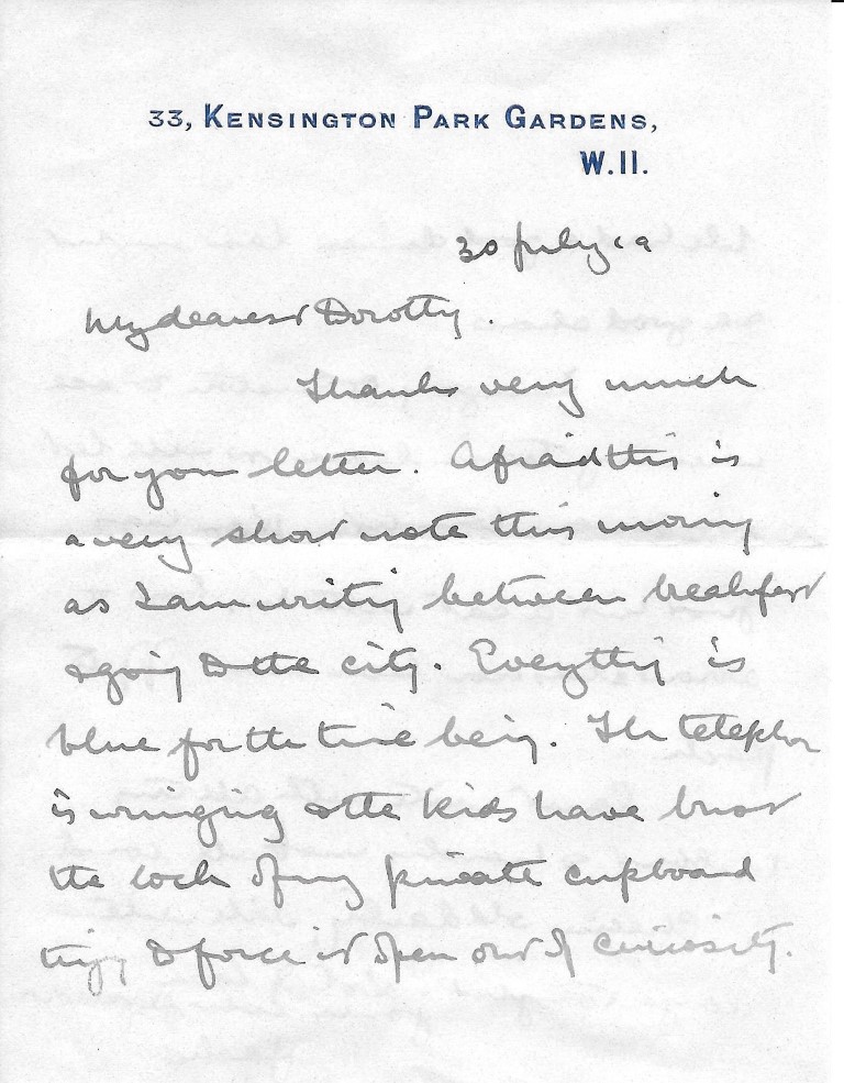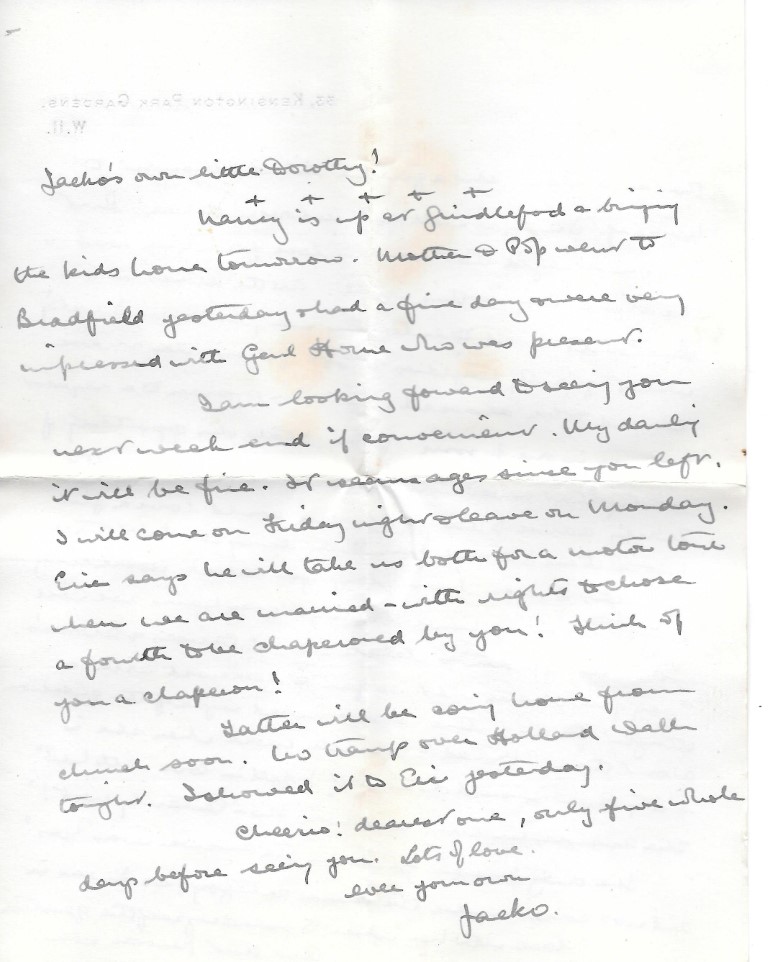 At the time he began writing to Dorothy, Jack was living at the family home — 33 Kensington Park Gardens, London W11.
