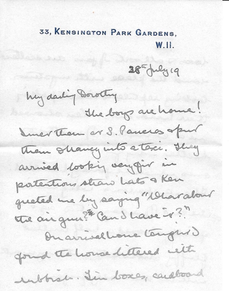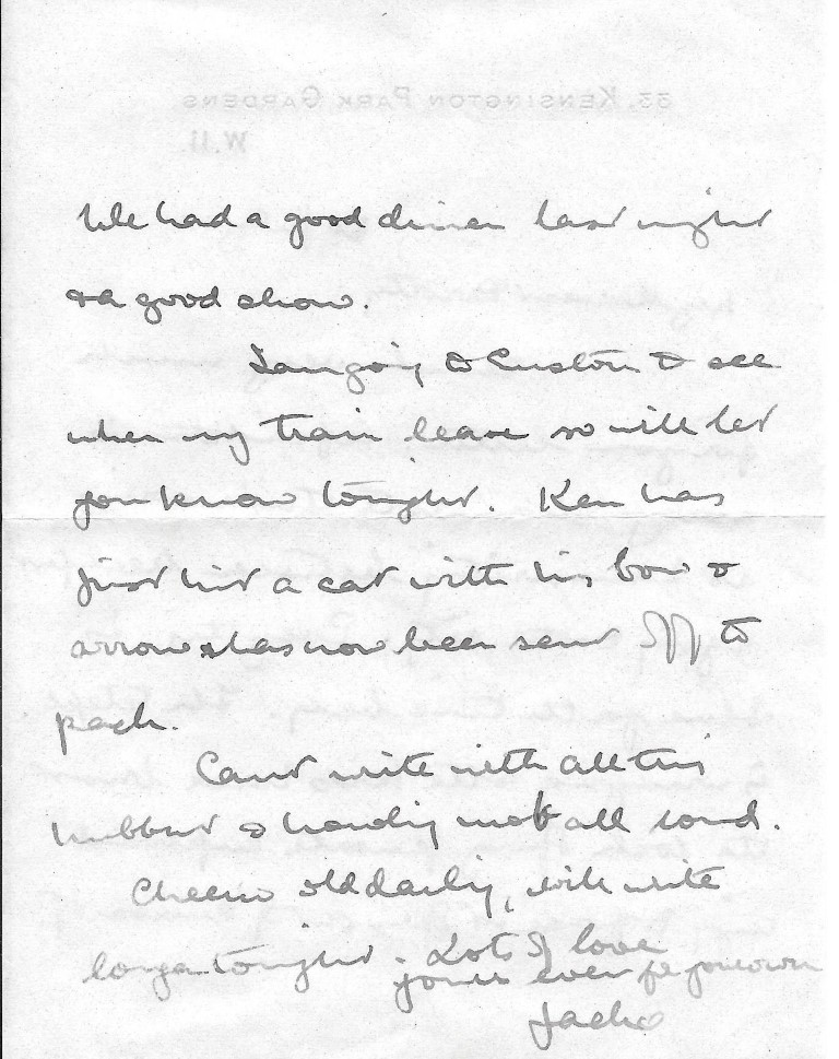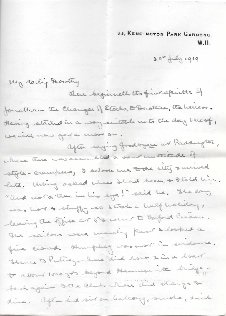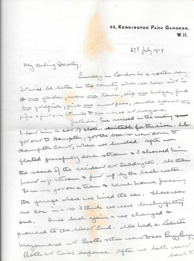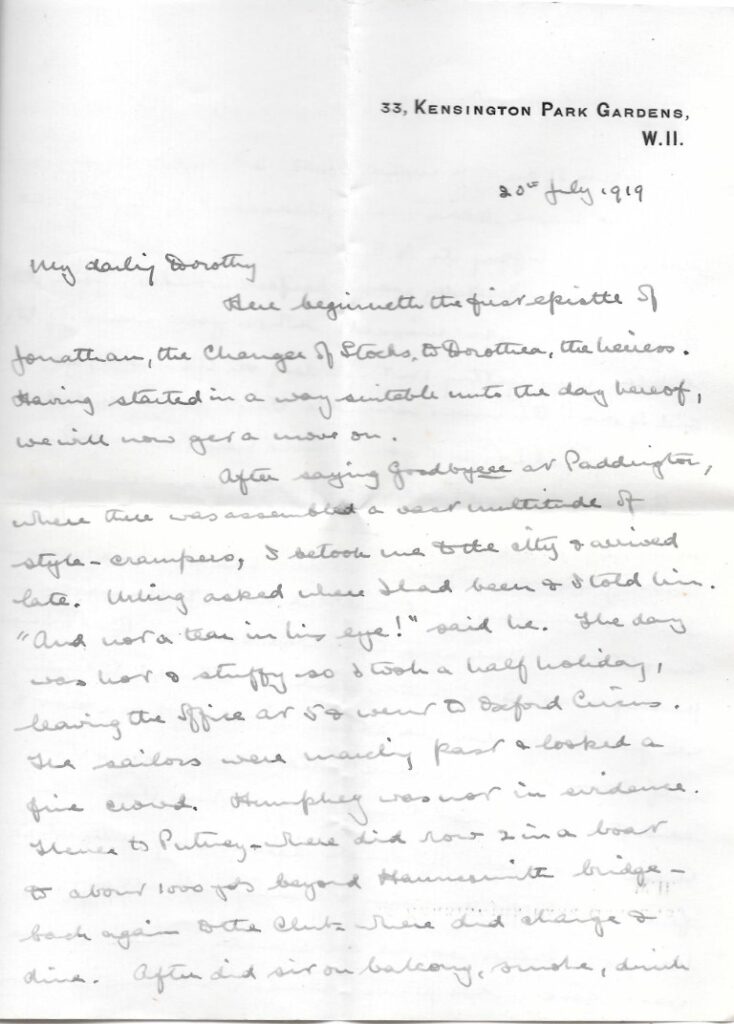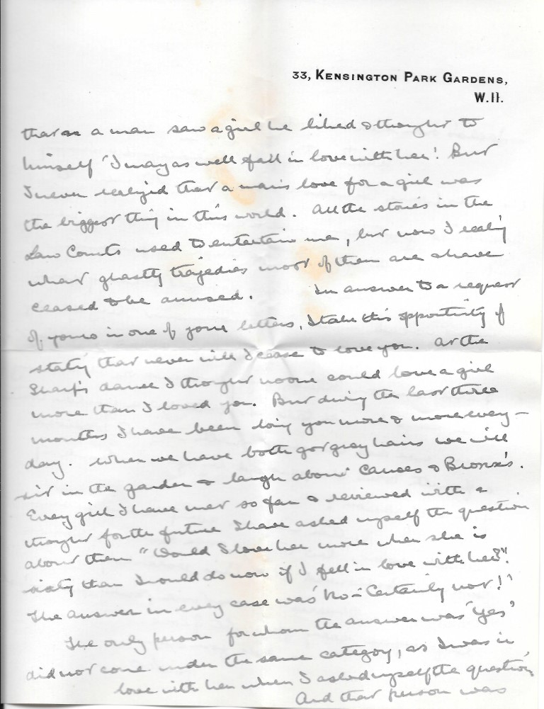 At the time he began writing to Dorothy, Jack was living at the family home — 33 Kensington Park Gardens, London W11.