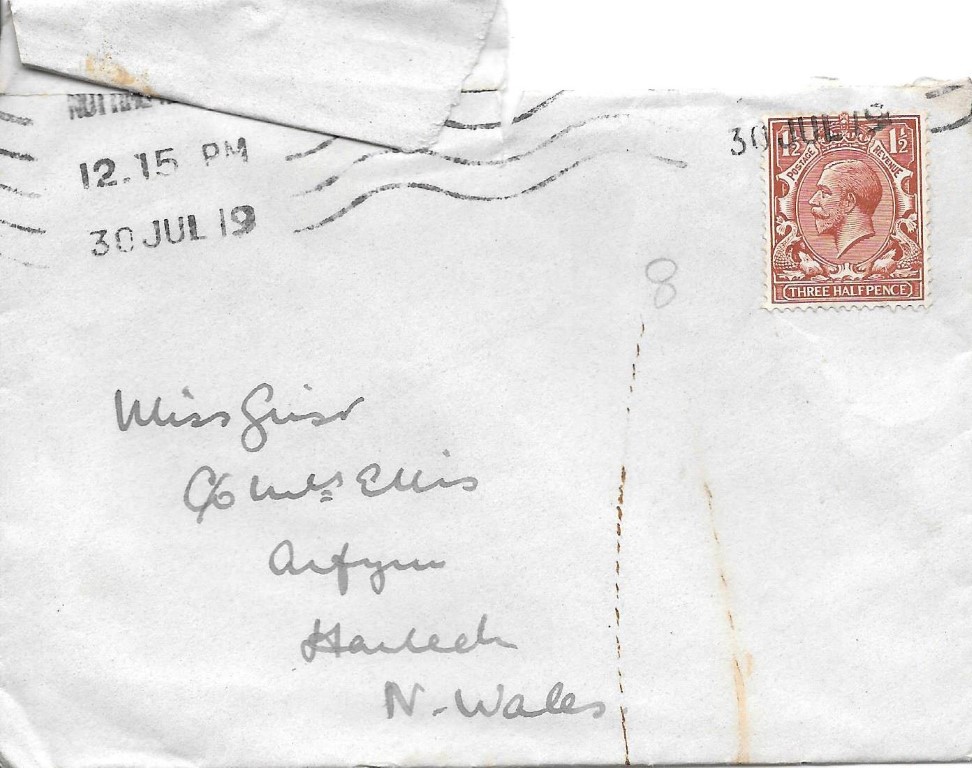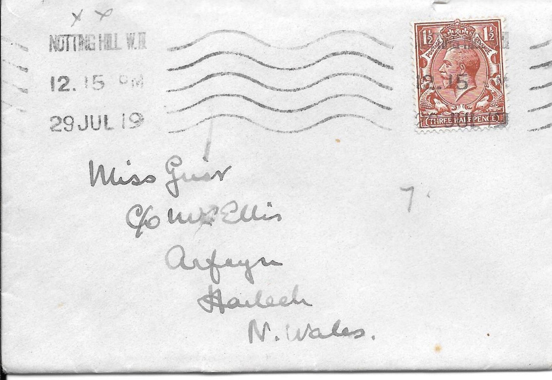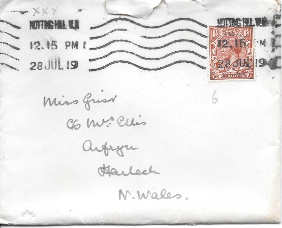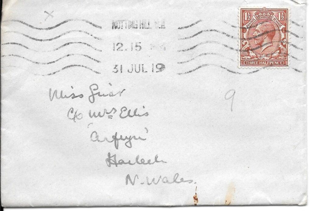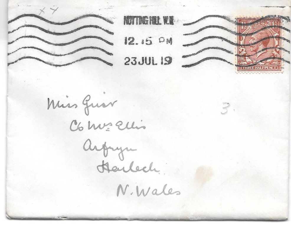 Below is a list of locations Dorothy wrote from during the second half of 1919 — her frequent moves remain partly unexplained but may relate to temporary domestic or nursing positions.