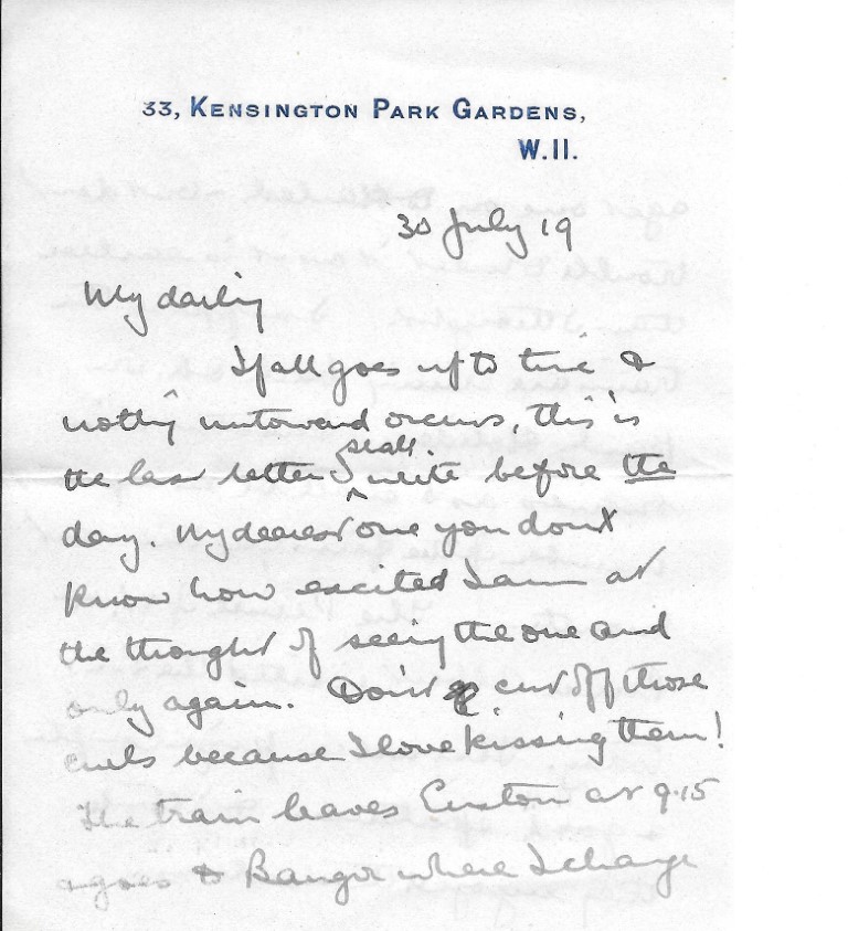 Jack’s early letters are filled with warmth and surprise at how quickly their relationship had blossomed. On 25 July 1919, he wrote: