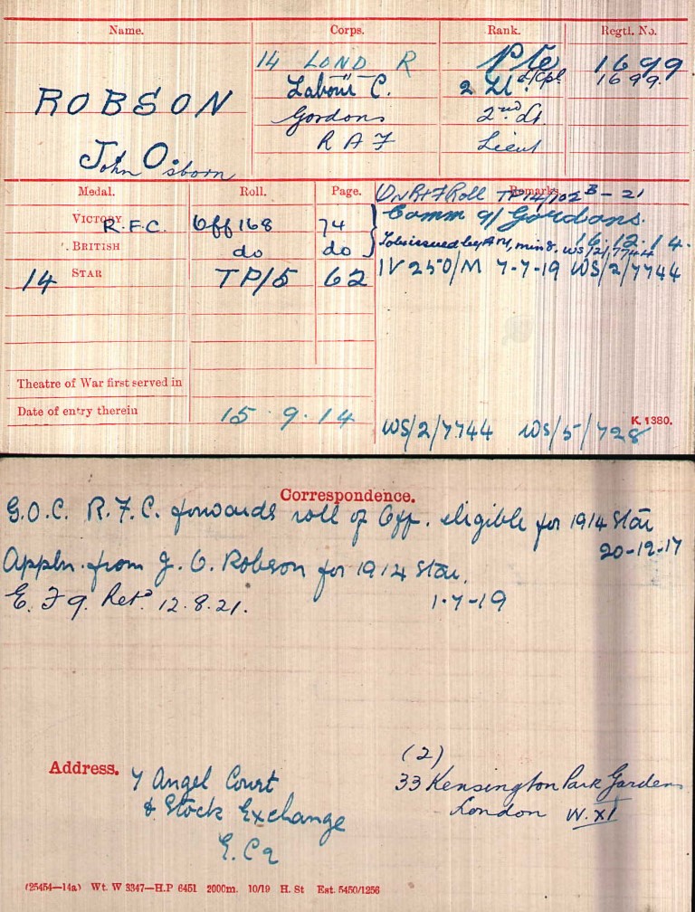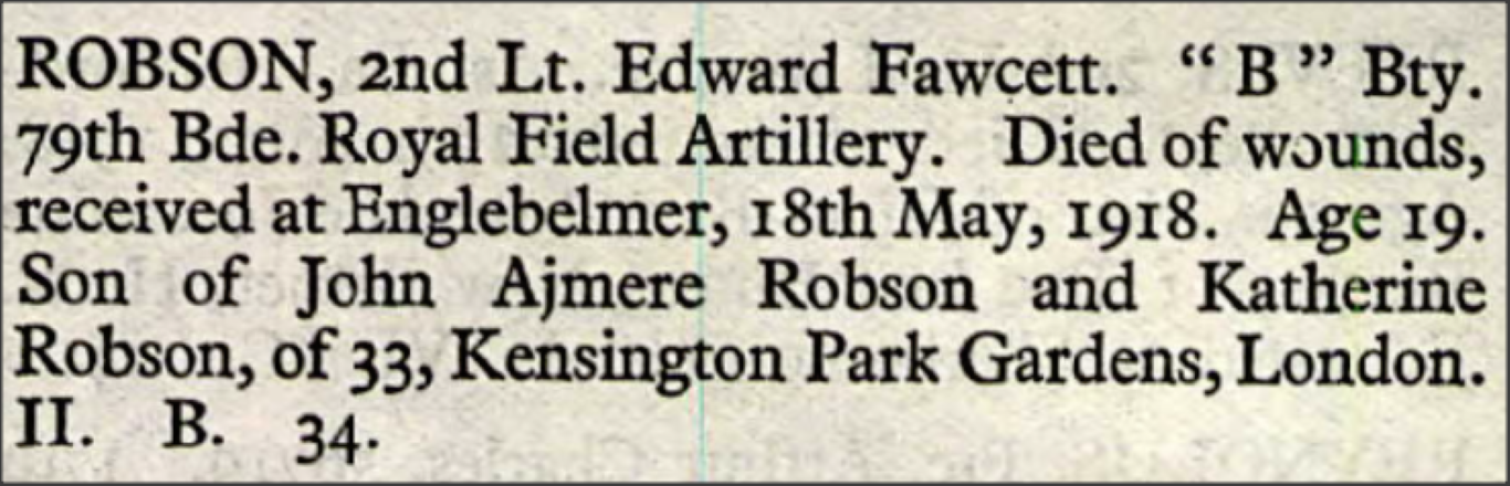 The Robson family endured personal tragedy during the war. Jack’s younger brother Edward Fawsett Robson died on 18 May 1918, aged just 19.