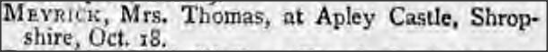 Herbert Chiverton Meyrick was born on the 18th October 1874 at Apley Castle. The 4th son of Sir Thomas Charlton Meyrick (14th March 1837 – 30th July 1921), Member of Parliament (for Pembroke between 1868 and 1874), 1st Baronet, C.B., and Mary Rhoda Hill (died: October 4th, 1924).
